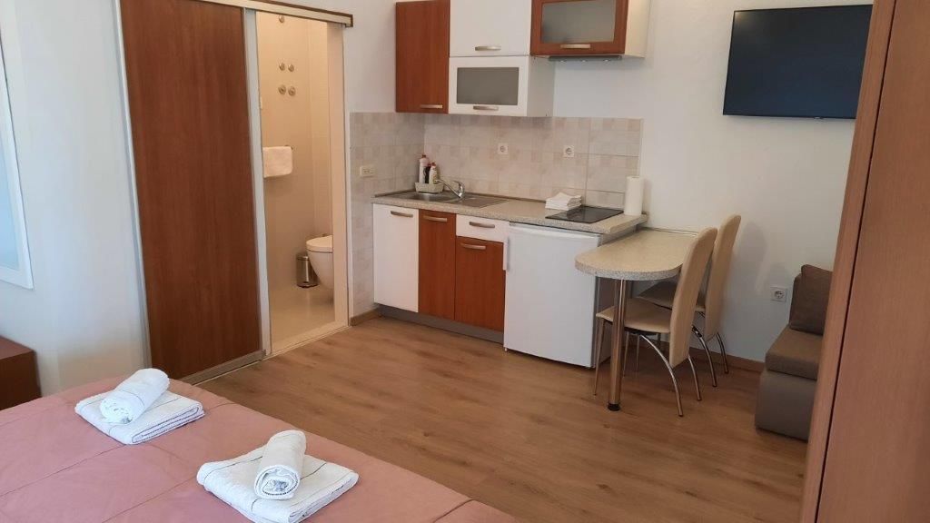Apart. 1 ( zweite Etage ) - Ferienwohnung für 2 Personen- Studio Apartment (eventuell+1 Kind): 1 Doppelbett, Badezimmer /WC, Küche, SAT TV-Led, Internet und grosse Terrasse mit Meerblick. Preise in Euro pro Tag zuzüglich Kurtaxe finden Sie unten in der Tabelle. Zusätzliches Bett kostet 10 € pro Tag. Putzen wird nicht belastet. Bootsanleger am Steg oder an der Boje. Abgeschlossener Trailerparkplatz. Hilfe beim ein- und auskranen. Bettwäsche, Handtücher, Badetücher und Geschirrtücher kostenlos und können immer nach 7 Tagen getauscht werden. Waschmaschine im Waschhaus hinter dem Haupthaus inclusive. Keine Haustiere erlaubt.